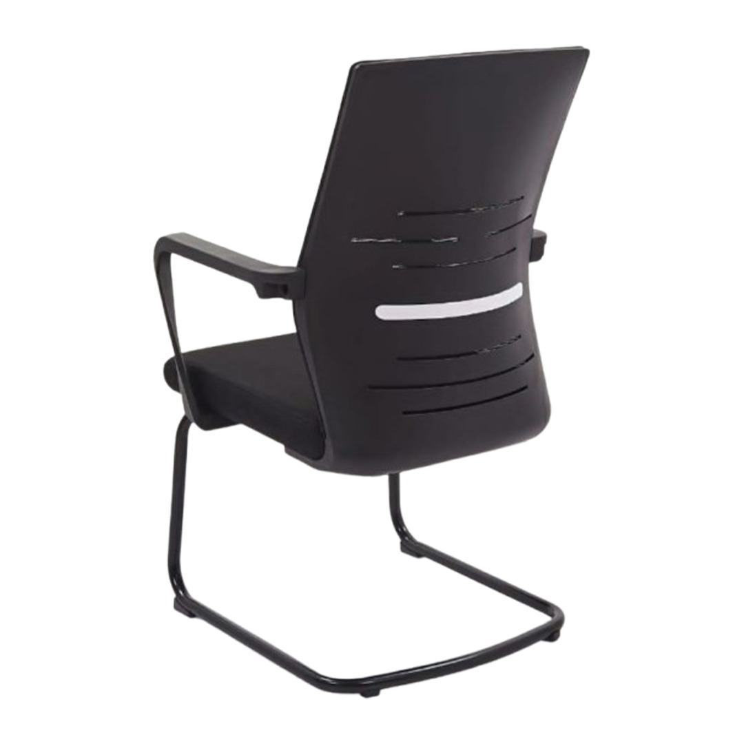 This visitor chair blends comfort with durability, making it a smart addition to any office or reception space. It features a supportive mesh back with a back cover for added style and structure, paired with a cushioned fabric seat for a pleasant sitting experience. The powder-coated metal finish enhances durability while giving the chair a sleek look. Built on a strong local frame, this chair offers reliability and long-lasting use, perfect for welcoming guests in offices, meeting rooms, or waiting areas.