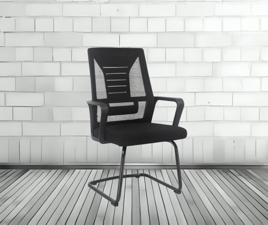 This visitor chair blends comfort with durability, making it a smart addition to any office or reception space. It features a supportive mesh back with a back cover for added style and structure, paired with a cushioned fabric seat for a pleasant sitting experience. The powder-coated metal finish enhances durability while giving the chair a sleek look. Built on a strong local frame, this chair offers reliability and long-lasting use, perfect for welcoming guests in offices, meeting rooms, or waiting areas.