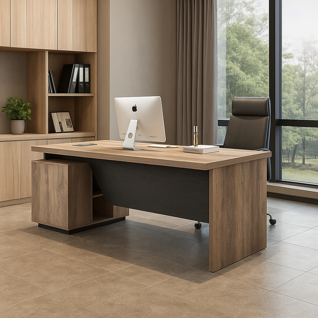 The table is finished with a smooth laminated surface that supports daily tasks while being easy to maintain. Its straightforward design makes it versatile for various office layouts, whether in individual cabins or shared staff areas.